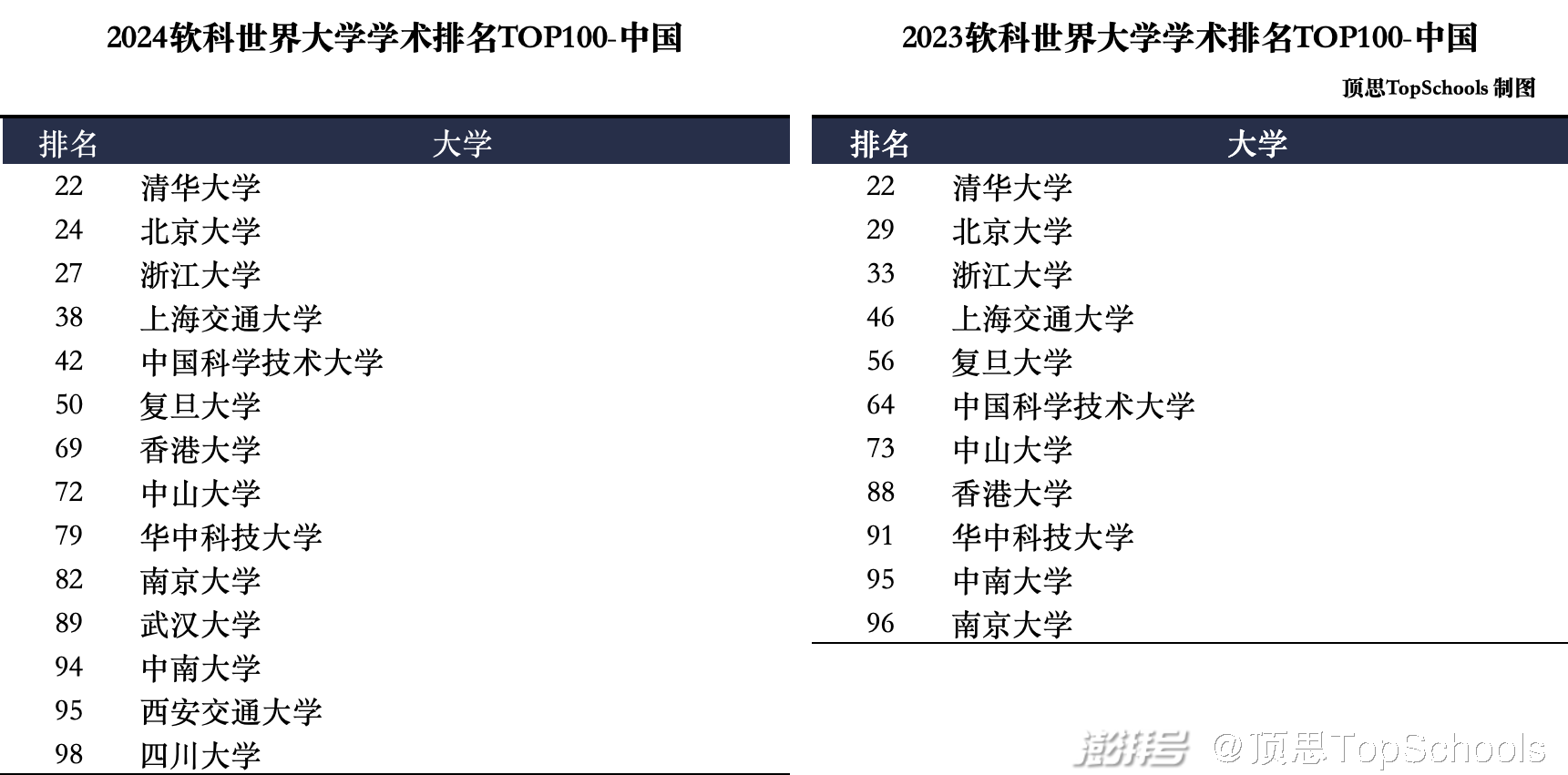 今年中国内地高校表现亮眼,武汉大学(89名)、西安交通大学(95名)和四川大学(98名)首次跻身全球百强。清华大学排名蝉联亚洲第一,北京大学进步5位,超过了帝国理工。香港大学为港校中唯一跻身TOP100的大学。