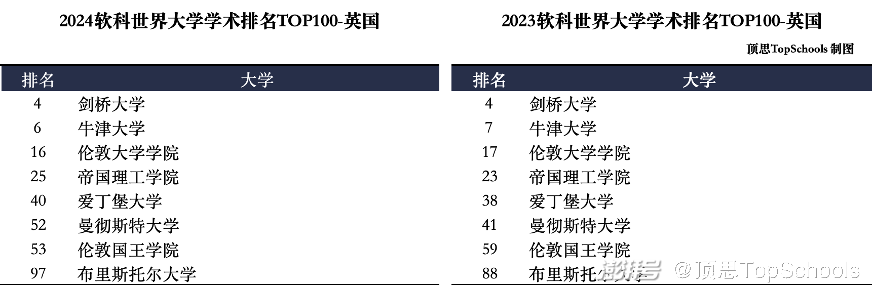 从上榜TOP100的8所学校来看,位次变动也不尽相同。下降幅度较为明显为曼彻斯特大学,从去年的41位下降到今年的52位,其次为布里斯托尔大学,从88位下降到97位。而上升较为明显的则为伦敦国王学院,从59位上升到53位。