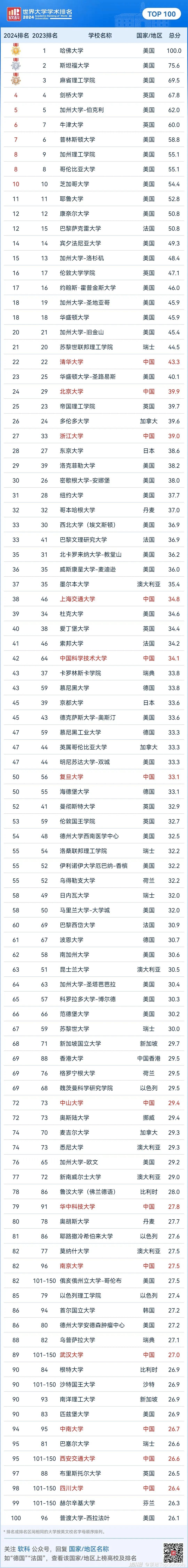2024软科世界大学学术排名(ShanghaiRanking's Academic Ranking of World Universities,简称ARWU)于2003年由上海交通大学世界一流大学研究中心首次发布,是世界范围内首个综合性的全球大学排名(THE-QS世界大学排名首发于2004年,U.S. News世界大学排名首发于2014年)。和其他三份榜单相比,软科的这份榜单更集中于均学术和科研指标,诸如教学环境、国际合作、雇主等指标均未参考,并且从2003年首发至今,21年间几乎没更改过指标权重。