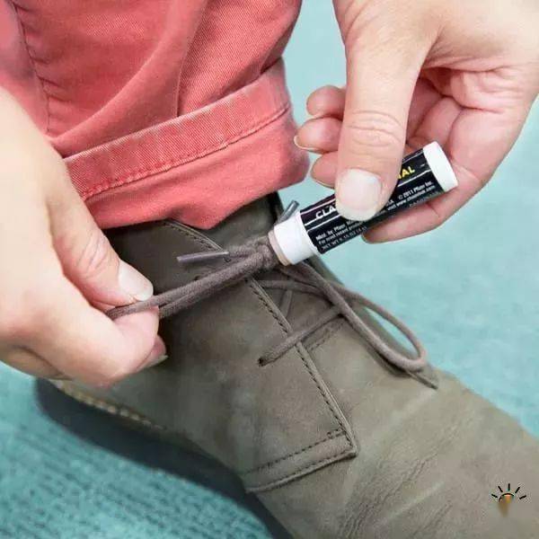 如果你的鞋带总是散开,那么不妨用唇膏在鞋带打结的地方多涂几次,这样鞋带就会更加牢固,再不用总是弯腰系鞋带了。