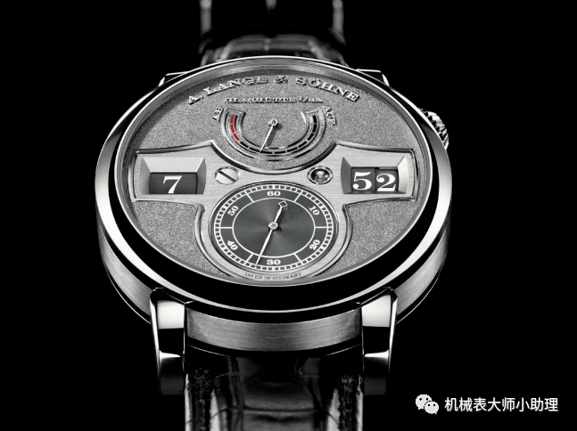 朗格标志性的“猫头鹰”表款,从发布后便成为了朗格旗下最抢手的表款。表盘采用了白金黑色镀铑材质,使表盘形成了特殊的灰白色调。最特别的是弧形的品牌logo和动力储存显示字样被制作成清晰的浮雕,十分平衡地放置在采用tremblage雕刻的表盘之上。另外银色的机翼形时间桥,与灰白色调的表盘形成了十分鲜明的对比。