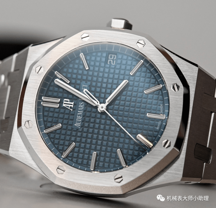 皇家橡树系列采用独特的八角形舷窗样式表圈,六角螺丝外露彰显出十足的现代机械感。这种风格打破了非圆即方的传统设计理念,采用经典大三针设计,配置双面蓝宝石防刮表镜,日历窗位于3点钟的时标位置上,白色表盘上还饰以经典的Grande Tapisserie大型格纹,整体做工鲜明有致。