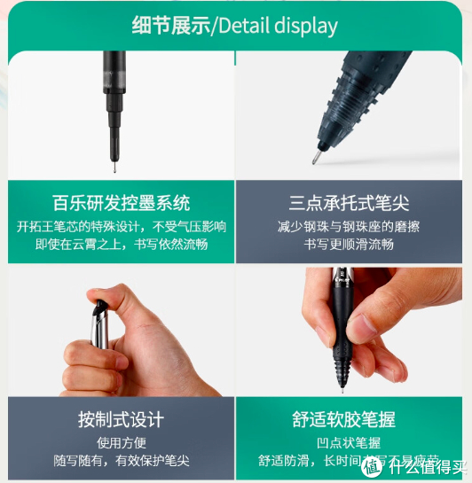 派通的BLN75在市场上备受好评。笔杆的按动设计非常方便,按动机关的回弹力度有质感。有着