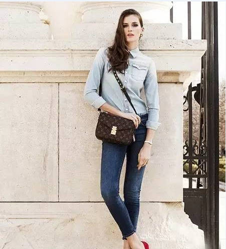 国外时尚博主秋季率性街拍演绎,随性休闲穿法凸显魅力,牛仔裤 、丹宁衬衣 、肩搭metis、 lv邮差包,搭配短发更有范儿。