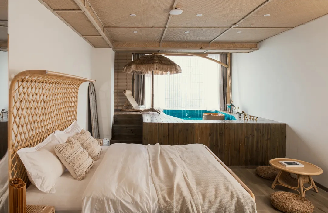 装修于2021年,每间房间都各具特色。全景落地窗+超大浴缸真的太惊艳了,晚上在这里边看江景边泡澡,再吃点零食,喝口小酒,真的是非常惬意,拍照也很出片。