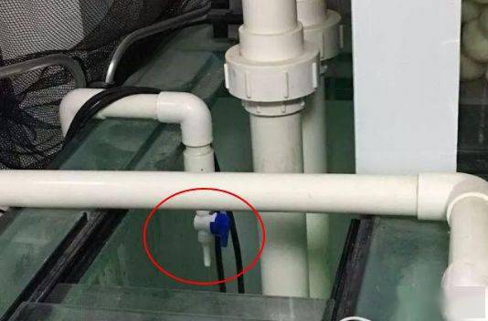 进缸的那一段管子,建议用2分的细管子,串接一个小阀门,便于调节进水量。注意进水口和出水口离得尽量远,避免刚流进去的新水还没充分混合,就排走了。进水也可以直接滴入金鱼缸中,但那样管路会比较难看,一般采用滴到溢流区最后清水槽里的办法。
