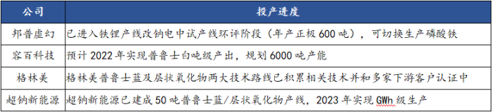 采用该技术路径的电池公司有代表公司有宁德时代、Natron Energy 等,其投产进度如下: