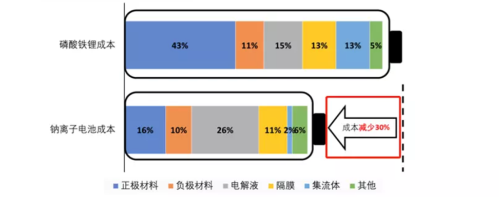 根据中科海纳官网披露的数据,如果钠离子电池选用NaCuFeMnO/软碳体系,锂离子电池选用磷酸铁锂/石墨体系,钠离子电池材料成本可降低 30-40%。