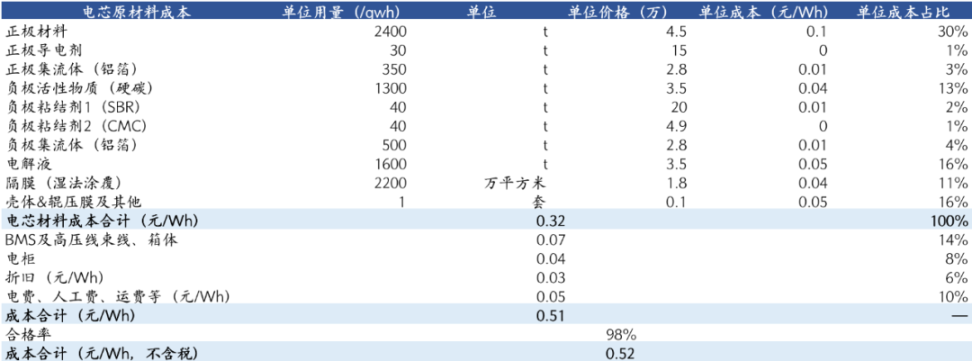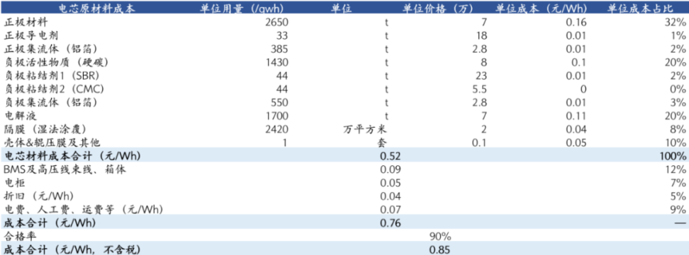 层状氧化物体系钠离子电池成本测算 - 成熟期(来源:北拓资本)04