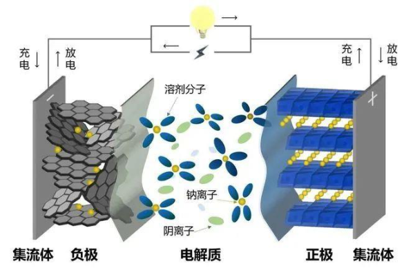 在众多新型电池路线中,钠离子电池与锂离子电池技术最为接近,2010 年以来其研究受到广泛关注。钠离子电池相比锂离子电池有资源优势明显、倍率性能更好、高低温性能较好、安全性更好等优势,且理论材料成本较锂离子电池低 30%-40%。从需求侧看,全球新能源产业如火如荼,对锂矿的需求量快速提升,有“白色石油”之称的锂矿对各国能源系统稳定至关重要。而从供给侧看,全球锂供给却呈现高度集中的特点:澳大利亚的 Talison Lithium 和 Galaxy resources 公司控制了全球约 70%的矿石锂供给。而 SQM、Rockwood 以及 FMC 三家公司则控制了全球约 92%的盐湖锂供应。中国的锂矿石蕴藏量占全球已知蕴藏总量第六位,但受限于矿产形态、分布位置、运输条件等因素,自主开采量并不高,中国国内约 80% 的锂需要进口,在材料端依旧存在“卡脖子”的风险。在各国日益重视本国能源安全的大环境下,钠离子作为锂离子电池的重要补充,未来将在储能、小动力车、两轮车市场有较好的应用前景,预计至 2025 年,钠离子电池市场空间将达 100GWh。01钠离子电池基础信息1.1 钠离子电池的发电原理钠电池和锂电池均是摇椅式二次电池,是一种依靠离子在正负电极之间往返嵌入和脱出的二次电池,其中正极和负极材料均允许钠离子可逆地插入和脱出。在充电过程中,钠离子从正极脱嵌,经过电解质嵌入负极,同时电子的补偿电荷经外电路供给到负极,使正负极发生氧化还原反应,保证正负极电荷平衡;放电时则相反。
