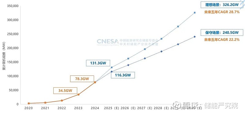 图10:中国新型储能累计装机规模预测(2025-2030年)
