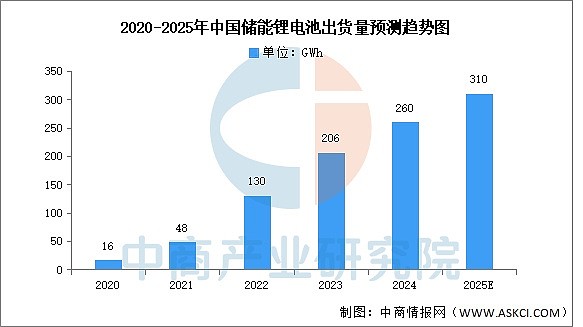 近年来,在风电、光伏装机量持续增长与5G基站建设加快的背景下,储能锂电池需求快速增长。中商产业研究院发布的《2025-2030年全球与中国储能锂电池市场现状及未来发展趋势》显示,2024年,中国储能电池出货量达到260GWh,同比增长26.2%。中商产业研究院分析师预测,2025年中国储能电池出货量有望达310GWh。