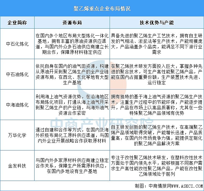 国内重点聚乙烯企业在资源获取上,通过自身开采、合作等多种方式保障原材料供应,在国内多地及海外布局生产基地。技术层面,企业不断研发创新,拥有先进的生产工艺技术,涵盖多种聚合方法,在产能上规模不一但都在不断提升,产品从基础品类到高端、定制化产品,满足不同市场需求,整体呈现出多元化、创新化发展态势。