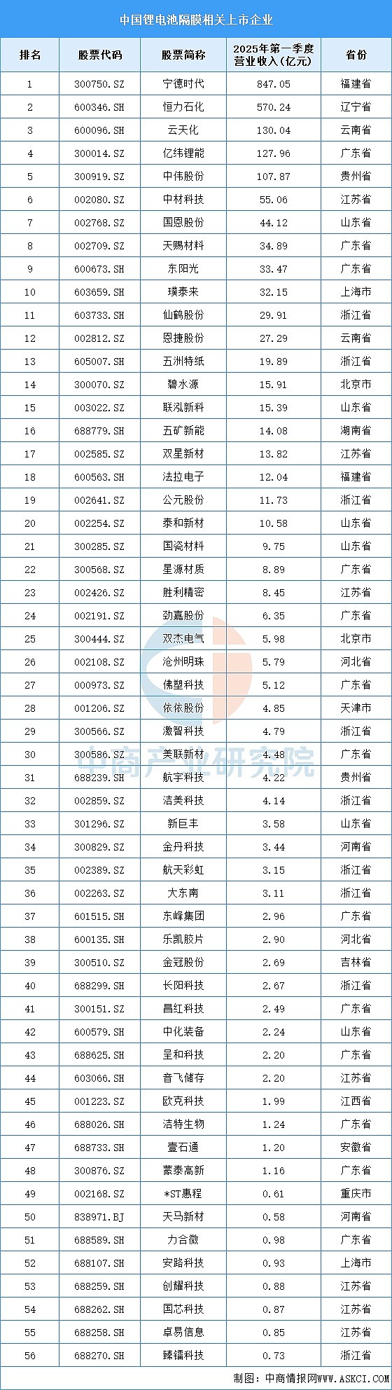 目前,中国锂电池隔膜相关A股上市企业分布较广,其中广东省数量最多,共12家。浙江省和山东省分别有8家和6家,排名第二第三。