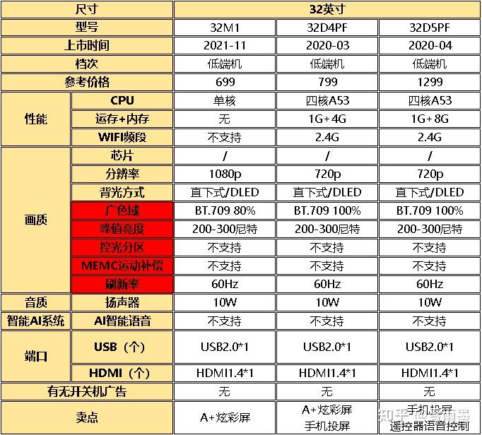 这一款依然是低预算之选,配置低端,但是不影响一般的观看需求,只要你对画质要求没那么高,这款也是可以的,价格真心便宜,荣耀、小米、雷鸟的低端型号似乎都没有什么比这款更便宜了。
