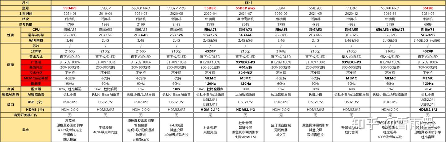 这一款是20年款,但是配置和性能上也不输55D6P max很多,主要是峰值亮度上不够,其他表现都是不错的,价格也不算贵,算是可以考虑的型号。