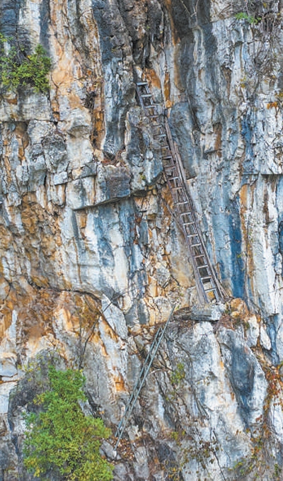 尼珠河村过去出村的一条悬崖路,村民叫它“天路”。 人民网记者 庄志斌摄