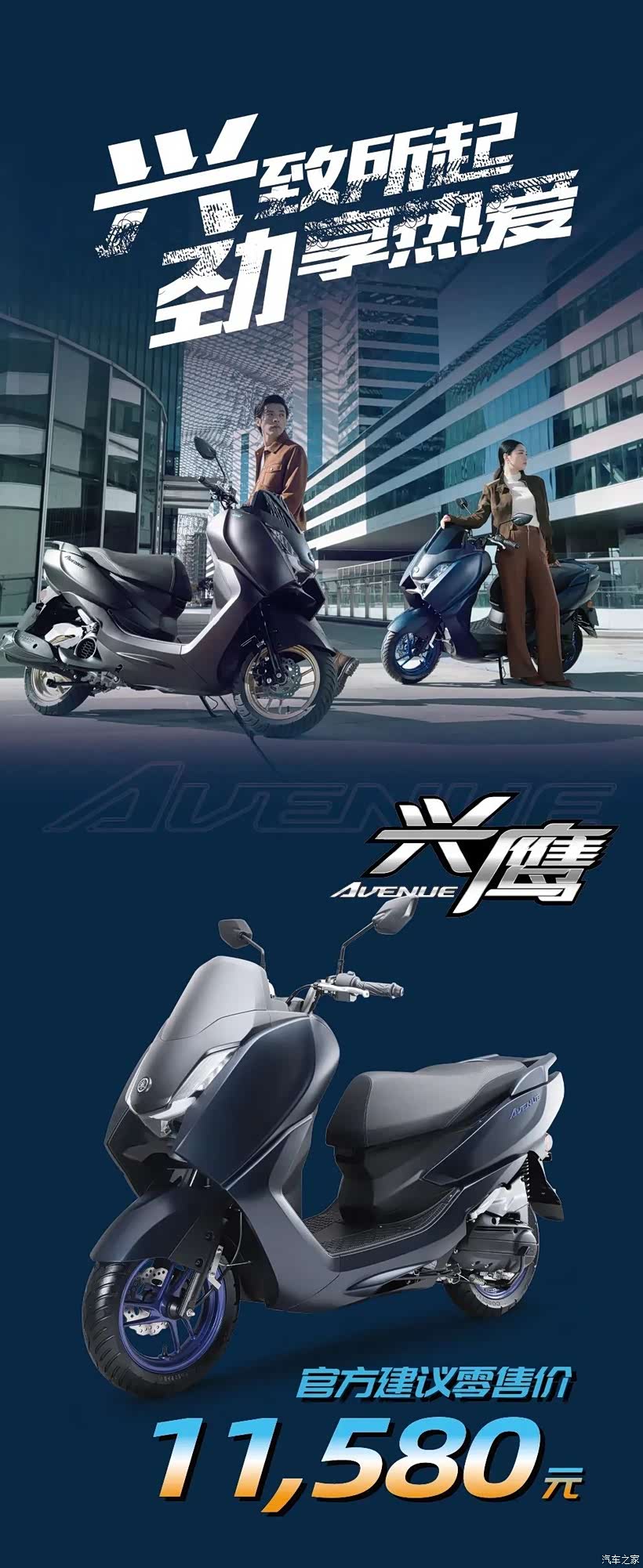 雅马哈于今天正式发布新款入门级踏板车型——兴鹰125。之前一直猜测是巡鹰125的升级版但没想到雅马哈给它了新的命名,虽然命名上有所不同但是外观上基本还是延续了巡鹰125的设计,首发优惠400元后的到手价为11,180元(原价11,580元)另外,官方还赠送了698元的配置包(专属智能锁)。