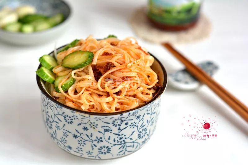 8. 面条浇上西红柿茄丁卤即可,清爽开胃