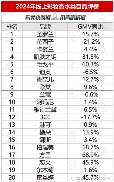 从GMV数据来看,欧莱雅、珀莱雅均破百亿,超50亿的有9个品牌。TOP20品牌的总GMV较去年同比增长17.28%,其中八成品牌实现同比正增长。