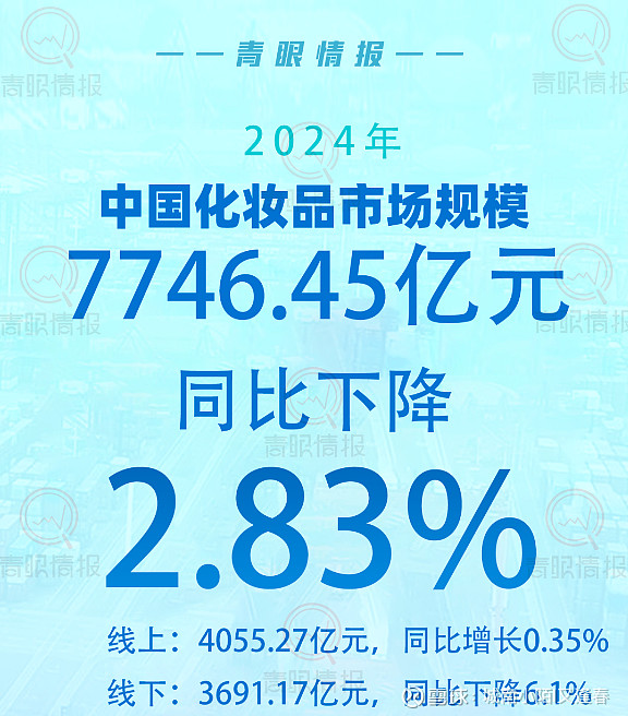 2024年中国化妆品市场规模为7746.45亿元,同比下降2.83%。