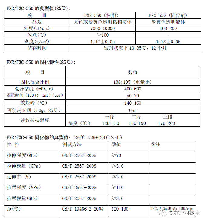 FC FXR/FXC-550是一种拉挤工艺用环氧树脂,常应用于复合材料拉挤工艺。FXR/FXC-550有着高环保安全特性(无溶剂固化体系),具有高力学性能、高耐温性能、适用期长和优异的拉挤速度;根据制品形状,可达 100-500mm/min;对玻璃纤维和碳纤维具有良好的浸润性,有着良好的储存稳定性,储存时间长达1年。