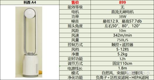 固定高度不可调节;无能效等级,比普通风扇要耗电一点;小结:科西这款产品的外观是比较独特的,产品适合固定摆放在客厅角落或者是卧室床头柜边,并且带有香薰功能,喜欢这种设计和功能的可以入手考虑。