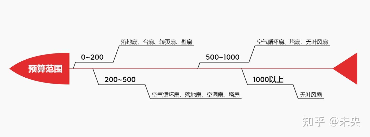1.3、选购预算范围电风扇对于不同预算的功能定位是不同,因此特地针对电风扇的不同预算进行了一个总结定位,这个也是大家在选前需要了解的部分。