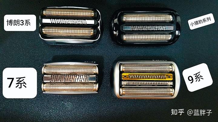 其次是剃须元件数量:3系和小猎豹差别不大,可以说没差别;从7系开始增加了肌肤性防护条,9系开始增加了劲毛提拉器,就是图中金黄色的配件,航空级别的钛金材质。而未野MRX搭载的是进口0.041超薄网膜,比博朗的更轻薄,刀片是进口不锈钢材质,外加顺滑舒适圈,而且研发创新锐角薄刃切剃工艺,做到0距离、0残留剃须!