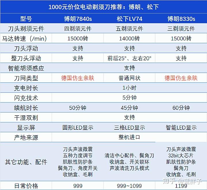 500元价位:更为推荐松下ST3Q,属于平价中高配置;600元价位:更为推荐小猎豹6系,亲肤减压如果皮肤比较差敏感,经常长痘痘的话,更为推荐小猎豹5、6系,亲肤刀头设计确实能很好的保护到皮肤,这个我自身也在使用。更喜欢质感外观和精细化的设计,可能博朗在这里会更有优势,这是毋庸置疑的。博朗的刀头会比松下的刀头更加细腻温润,适合肌肤比较差的用户。2、1000元松下ES-LV74、8330s型号推荐博朗剃须刀 7840s松下剃须刀 ES-LV74博朗剃须刀 8330s
