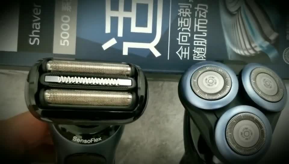 首先是剃须系统的区别,由原来的5系刀头升级为7系刀头,刀网升级为V型刀网,同时刀片也由原来的27组单层刀片,升级为双层45组刀片。