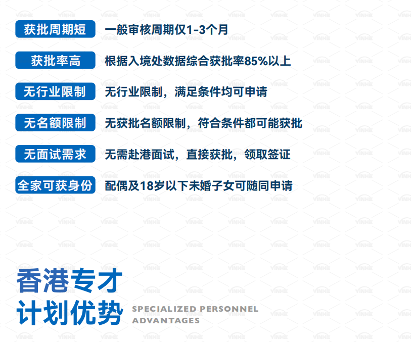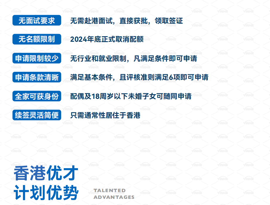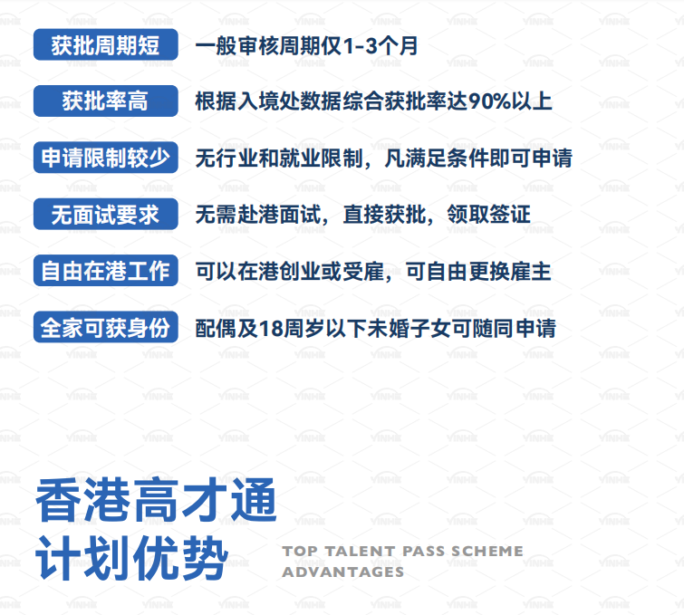 适用人群:目前或计划在香港就业的申请人,更适合从事金融、科技、医疗等行业的专业人士。