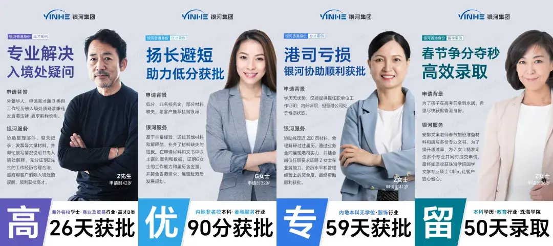 通过银河集团一站式的服务帮助,不仅能节省申请人的时间和精力,还能大幅提高申请成功率,更快速融入香港。