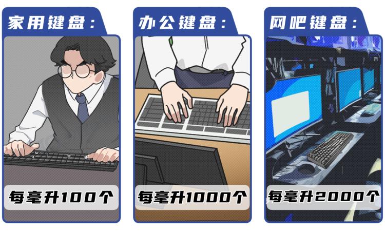此外,据统计,电脑键盘垃圾是以平均每月2克的速度堆积而成的,上面还潜伏着大量肉眼看不到的细菌。