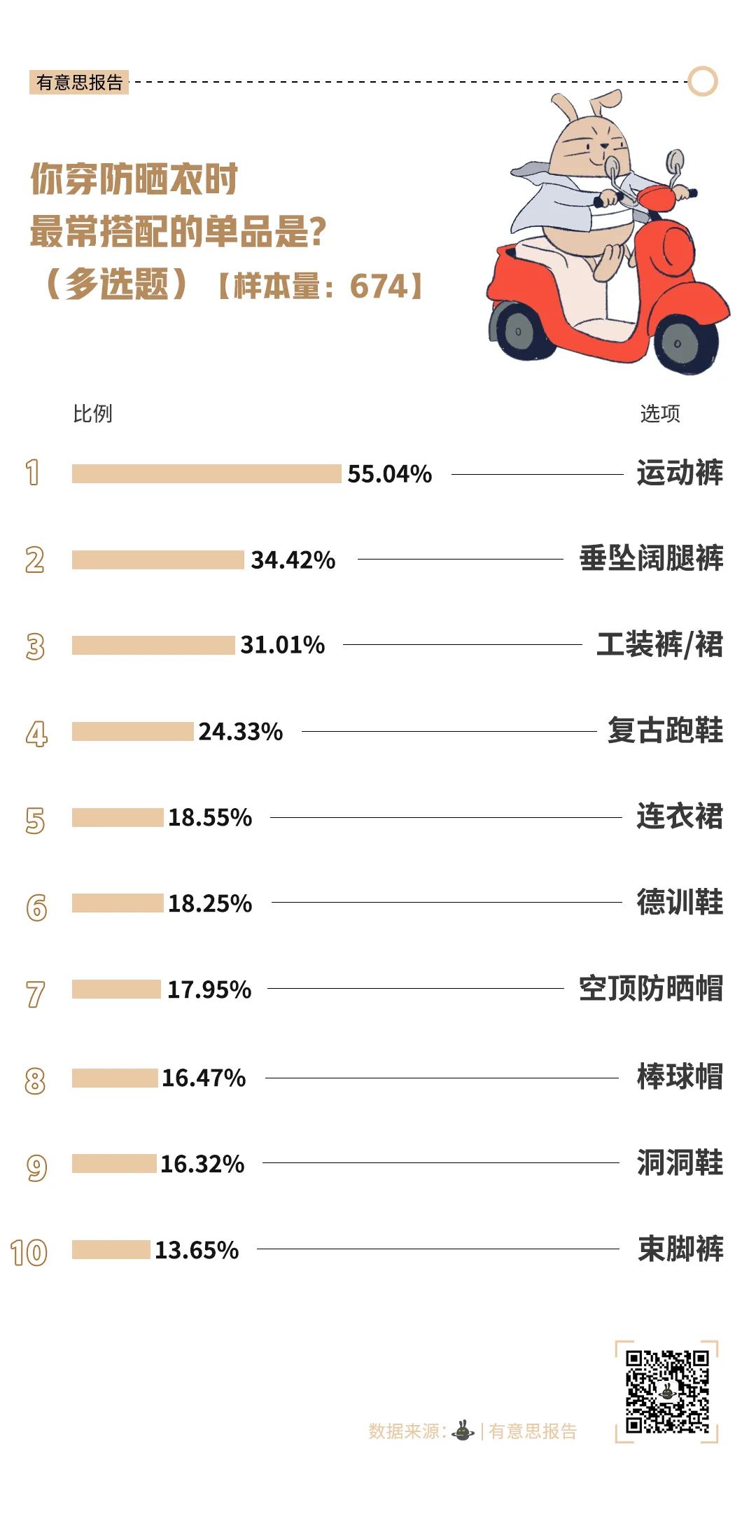 根据有意思调查,防晒衣的天选“搭子”是运动裤。