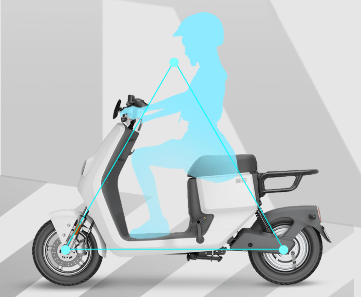 其他的配置上,从骑行来看,它的设计符合人机工程学,黄金三角设计,骑乘更舒适;车辆有前后液压减震,骑行颠簸路段,也能有很好的舒适体验;车辆还有汽车级安全P档,便携隐藏双充电等配置。