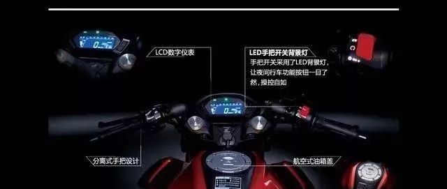 这款车型借鉴了贝纳利等车型的设计元素。而悬挂采用的是侧置式可变阻尼后单减震器,和倒置式前减震器的组合,带给人比较高端的视觉冲击。由于造价考虑该车型并没有配备液晶显示仪表,而是采取了传统式的机械仪表盘,不过好在实用上并没有大打折扣。