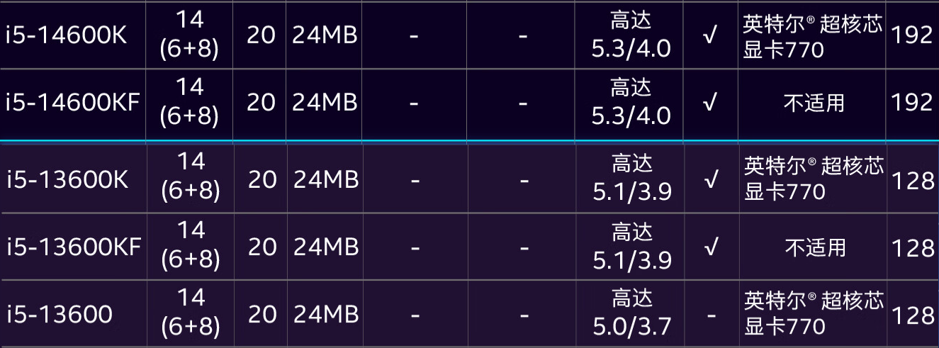 3.2 13600kf和14600kf区别,应该如何选?13600kf比13600kf只提升了一下主频,内存容量上限