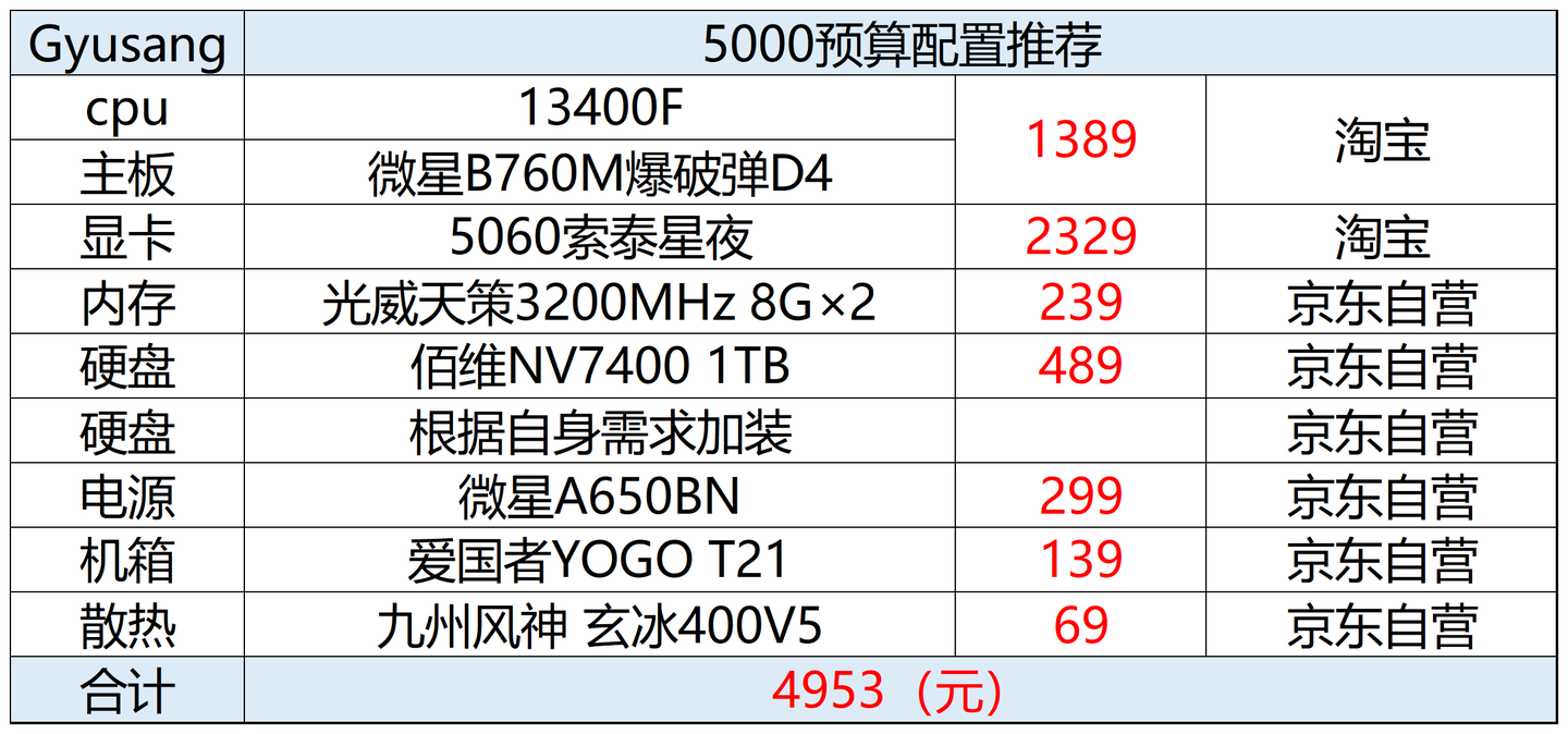 本文内配置单无任何利益相关,配置推荐以性价比为主,每月月初会及时更新,希望大家可以点赞支持一下哈~纯为爱发电,大家的支持就是我的动力。
