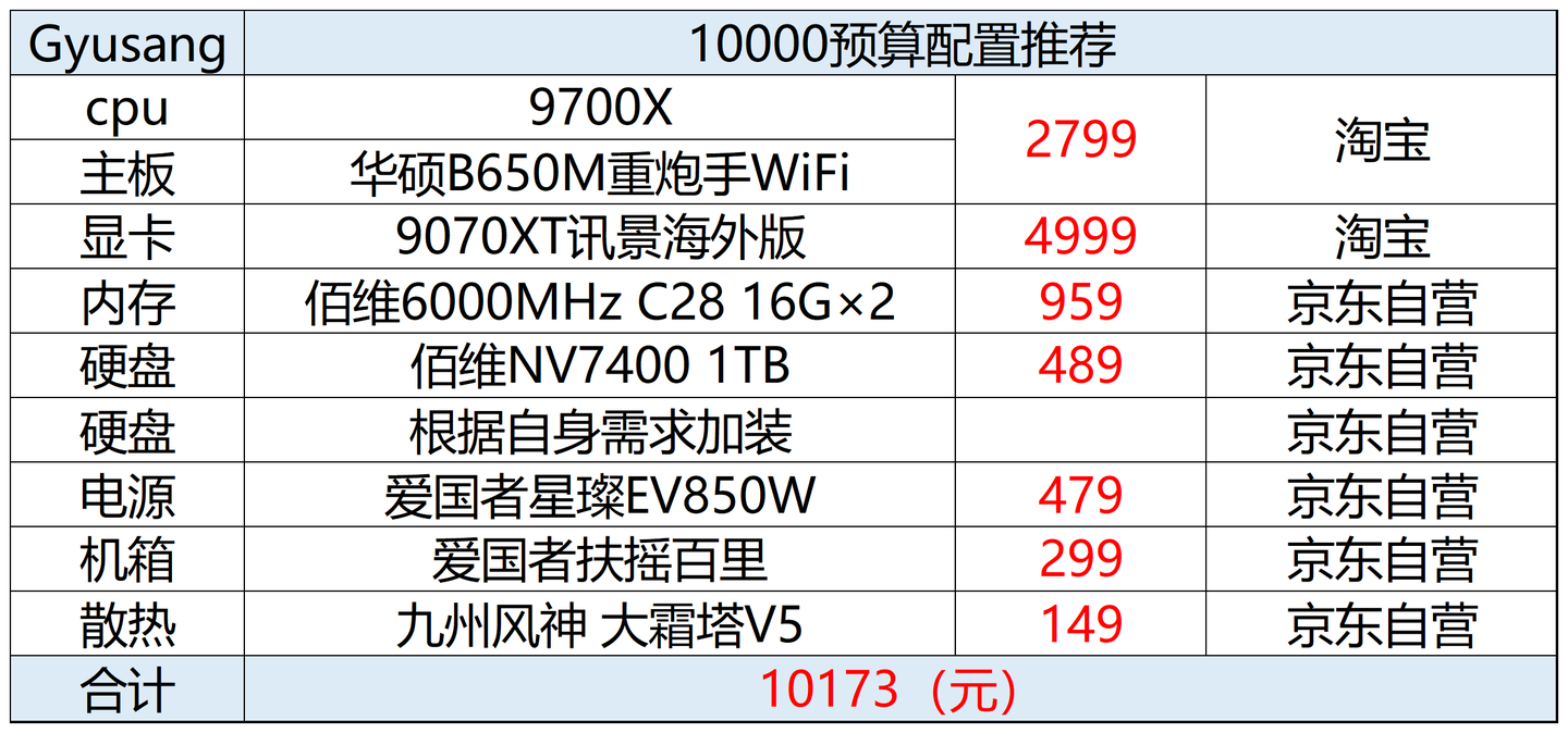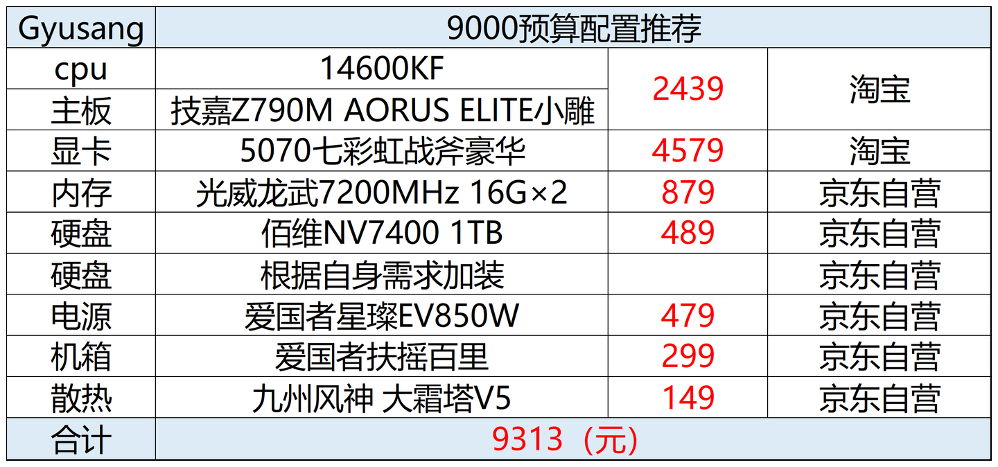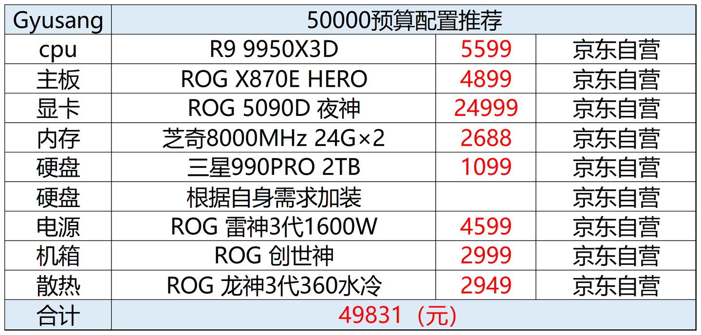 Gyusang:9950X3D+5090D全家桶旗舰配置推荐