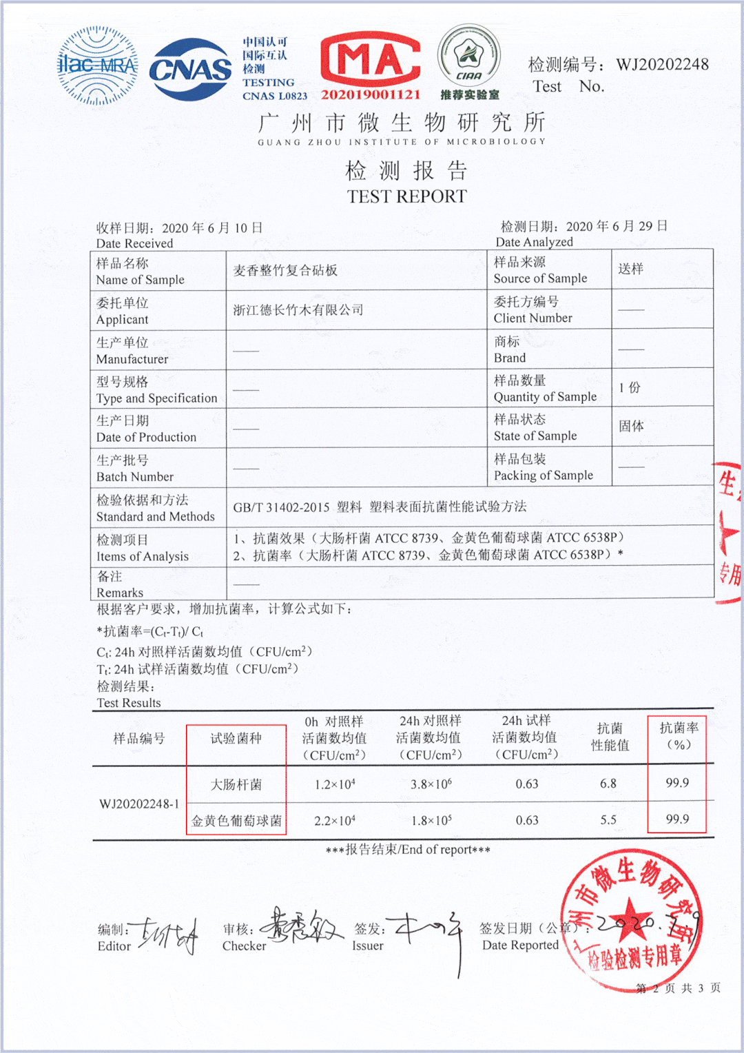 并出具了实实在在的抗 '菌报告:对大肠杆 '菌等砧板常见有害菌, 抑zhi和杀mian率高。