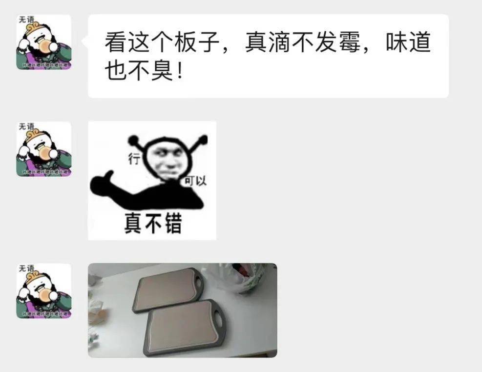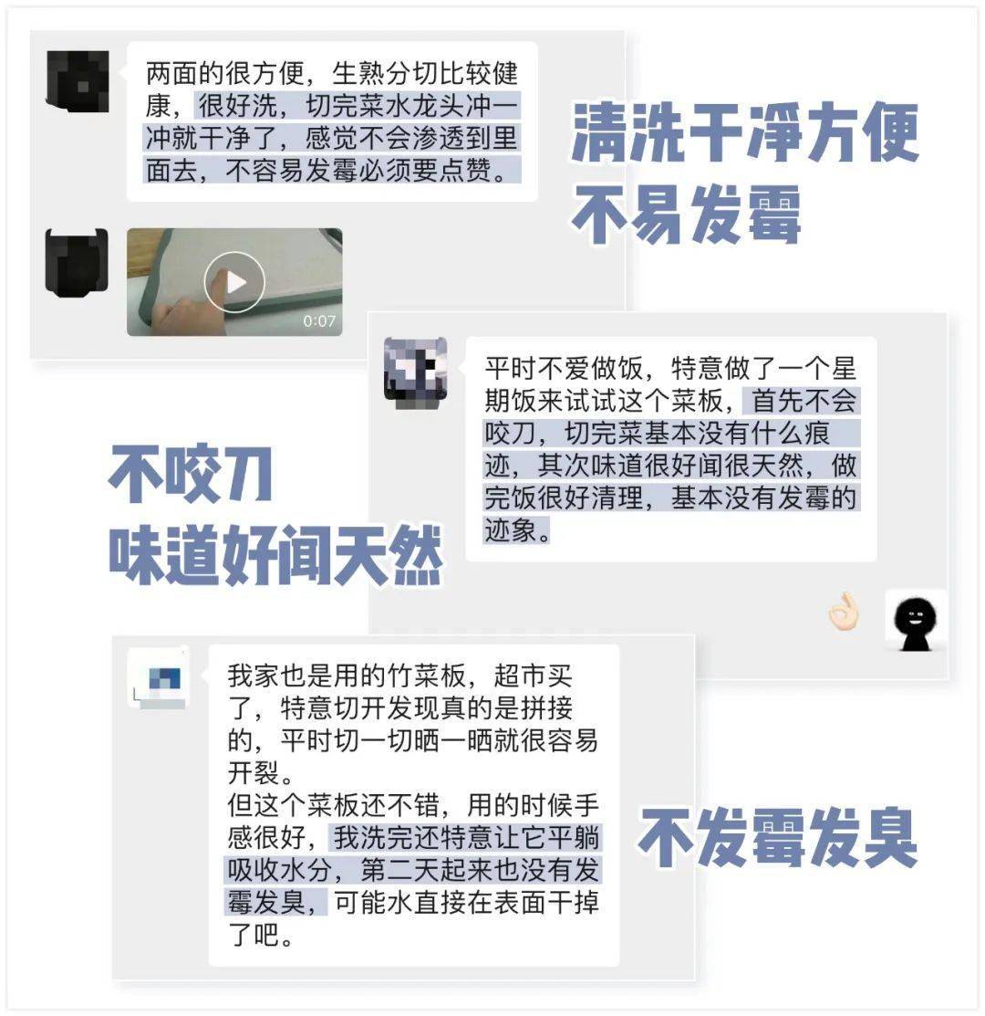 她说住的地方比较潮湿,以前用超 '市买的菜板,不出一个月就发霉了,但这块已经接近半年, 还跟新的一样不发霉不发臭!