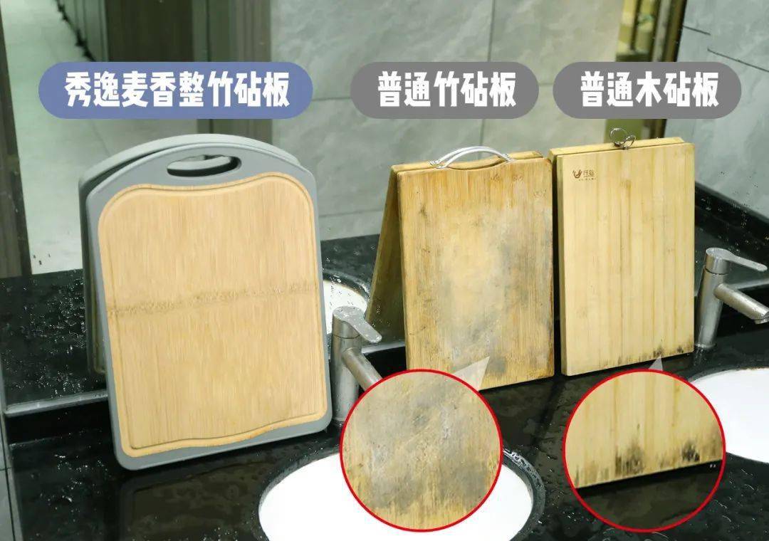 把它和木菜板、其他品牌的竹菜板,同时放在水池旁。