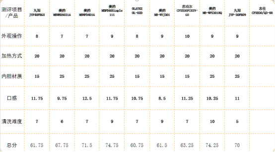 最后我们再根据所有人的打分取出平均分,这样也能更精确的评价出电饭煲煮出米饭的口感啦。最后我们打分如下: