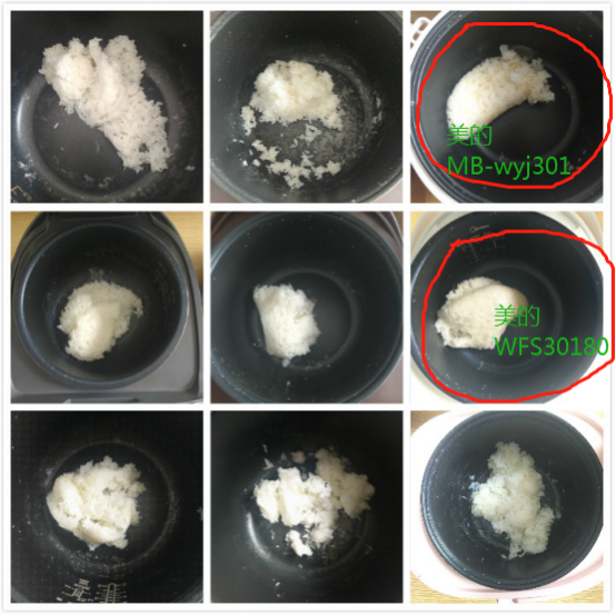 通过上面的图片,可以看出有些锅的不粘效果真的是特别好了,要实名给美的WFS30180打call,还有就是低估了美的MB-wyj301,本以为它应该是最粘锅的,但是你看第三排最右边的美的MB-wyj30,干干净净。