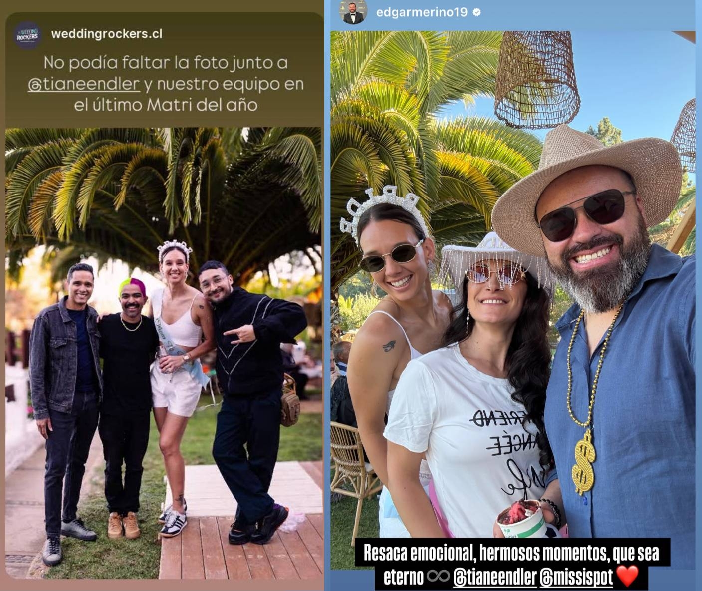 Instagram @tianeendlerUno de ellos fue fiel a su estilo como deportista: shorts y top blancos, con zapatillas del mismo tono y franjas oscuras. Para dar el toque glamoroso, llev贸 una tiara perlada con la palabra "bride" (novia).聽Su esposa visti贸 polera blanca y un sombrero estilo vaquero, con flecos.聽