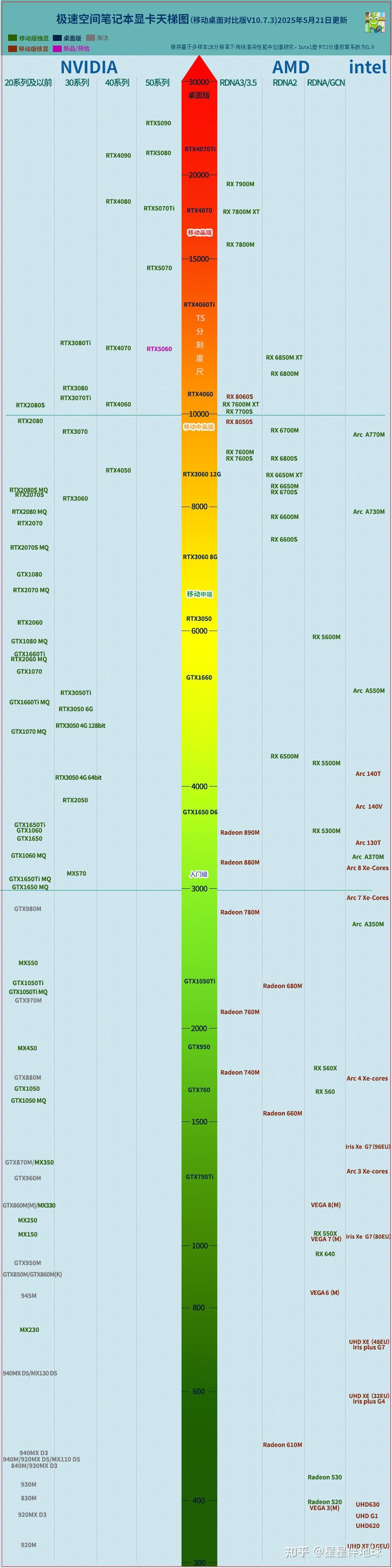 附上显卡天梯图 图片来源:极速空间 更新2025年5月