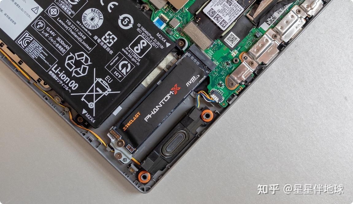 散热方面,相比上一代有了明显改进,配备了加粗的8mm热管和双风扇设计,依然采用主流的内吹风方案。但高功耗下的键盘温度较高,且噪音也略显明显。机器内置双M.2硬盘槽,方便扩展。而84Wh的大电池支持约10小时的续航。