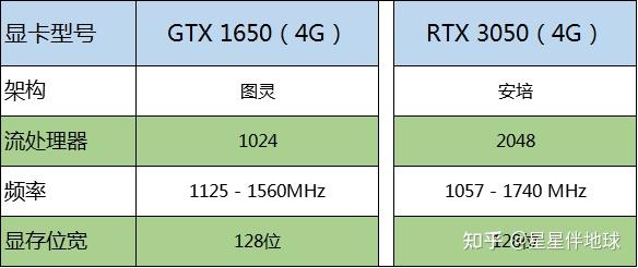 图片可以看出同样是4G显存的显卡,但是无论是架构/流处理器/显存频率两者都存在着很大的区别,而RTX3050(4G)则是把GTX1650(4G)吊打。