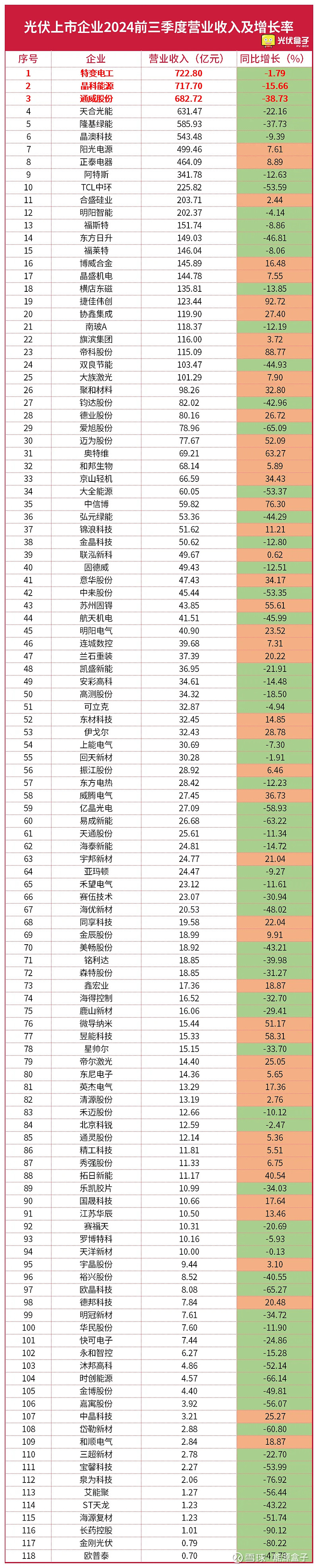 1.光伏企业2024前三季度营业收入TOP10: